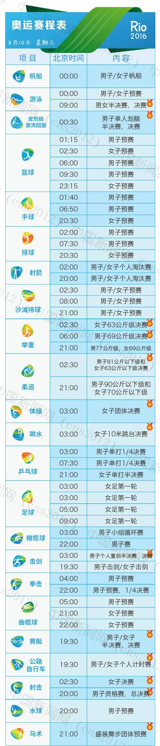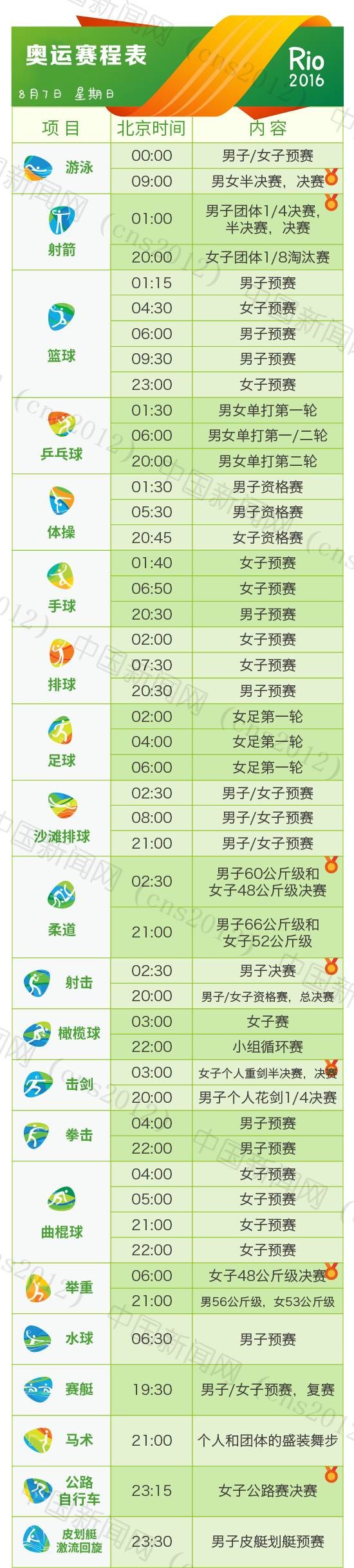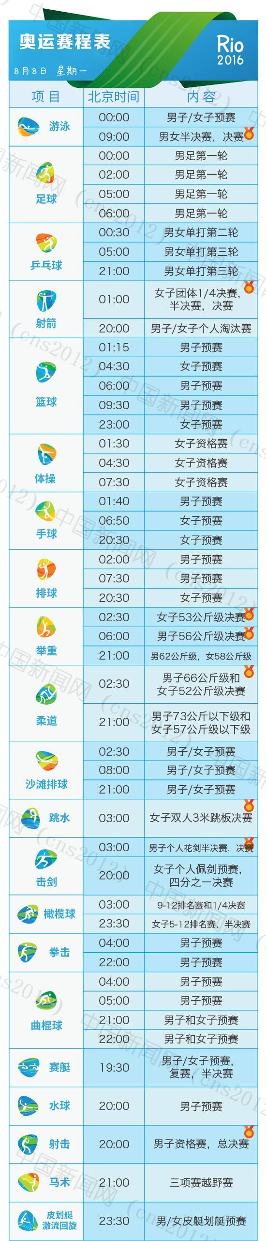 里約奧運會完整賽程表