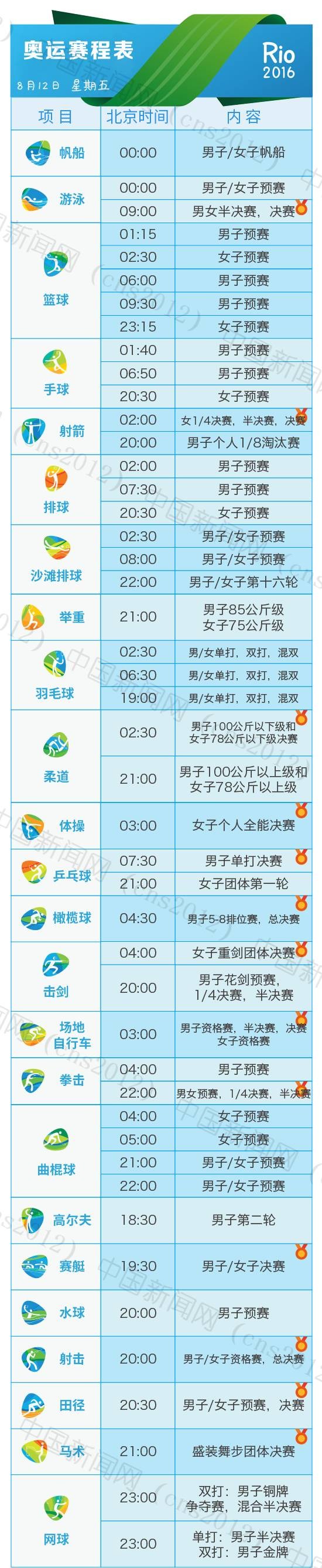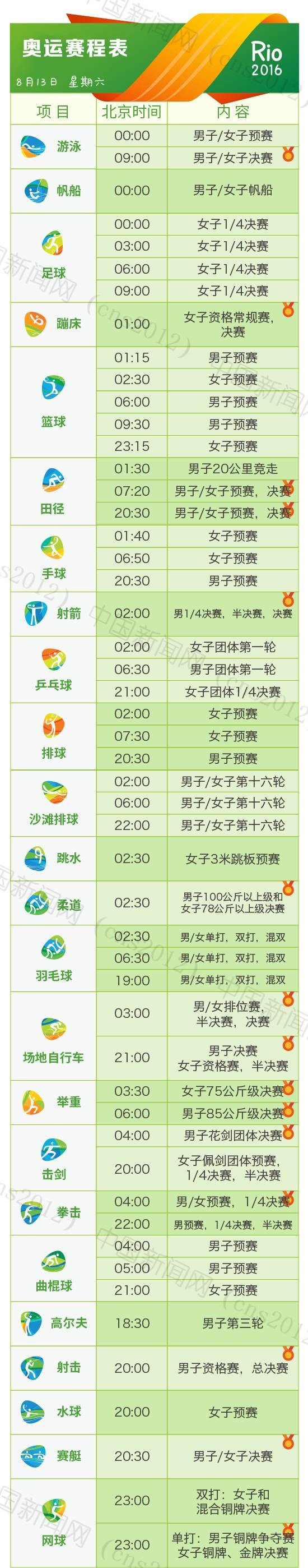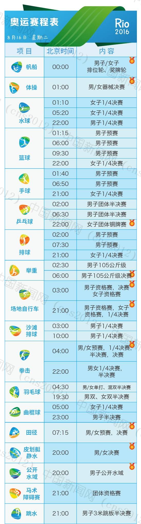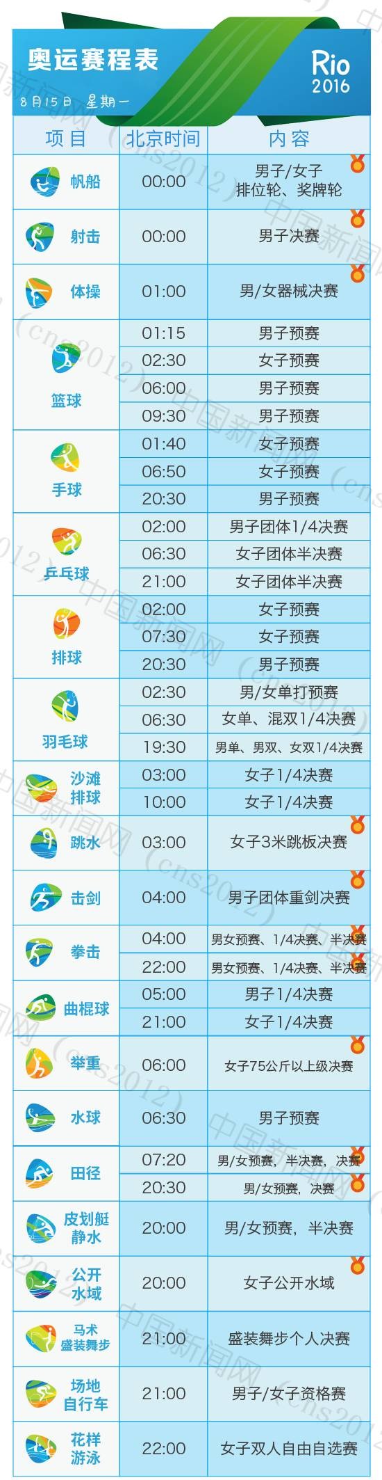 里約奧運(yùn)會(huì)完整賽程表