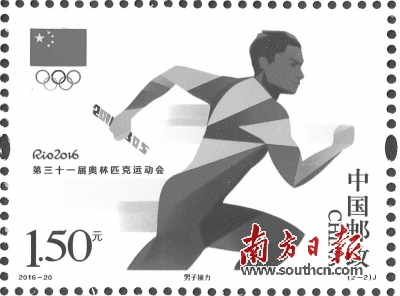 據(jù)介紹,第一枚郵票選擇排球比賽經(jīng)典瞬間,人物具有動(dòng)感,漸變色條也帶出運(yùn)動(dòng)的速度感,郵票顏色特別選擇了代表巴西的綠、黃、藍(lán)三色。而第二枚郵票選擇了男子接棒后奔跑瞬間,顏色以代表中國(guó)的紅、黃色為主。郵票由北京郵票廠采用影寫版印制,特殊工藝運(yùn)用體現(xiàn)明信出郵票動(dòng)感和科技感。