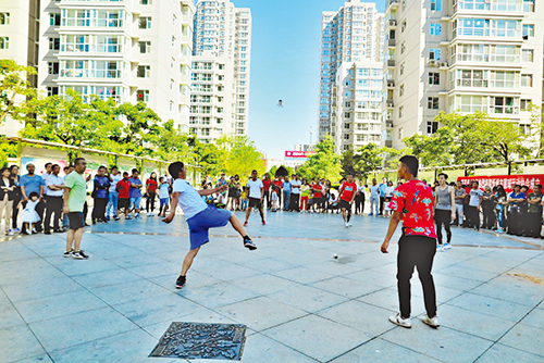 會(huì)后,來自全市各地的毽球愛好者展演了各自的絕活兒,小巧的毽球在表演者的腳尖上下翻飛,精彩迭出,高潮迭起,不斷博得觀眾的掌聲和叫好聲。(魯明強(qiáng) 攝影報(bào)道)