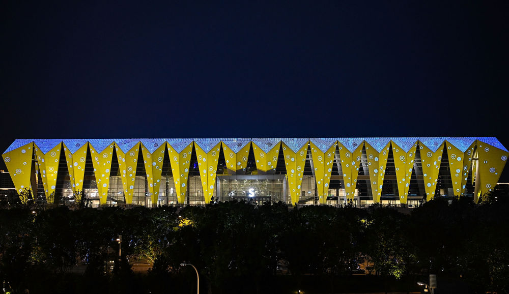 西安奧體中心游泳跳水館外景。新華社記者王曦?cái)z