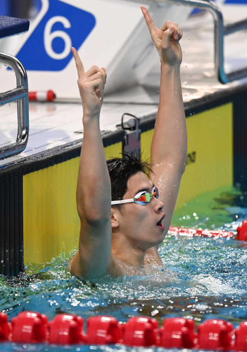 繼首個比賽日在男子100米自由泳決賽中超越亞洲紀錄后,潘展樂當天又以1分44秒65奪得男子200米自由泳金牌,可列今年世界第一好成績,與孫楊保持的亞洲紀錄1分44秒39相差0秒26。奧運會男子200米混合泳冠軍汪順和浙江隊另一名選手洪金權分列第二、三位。