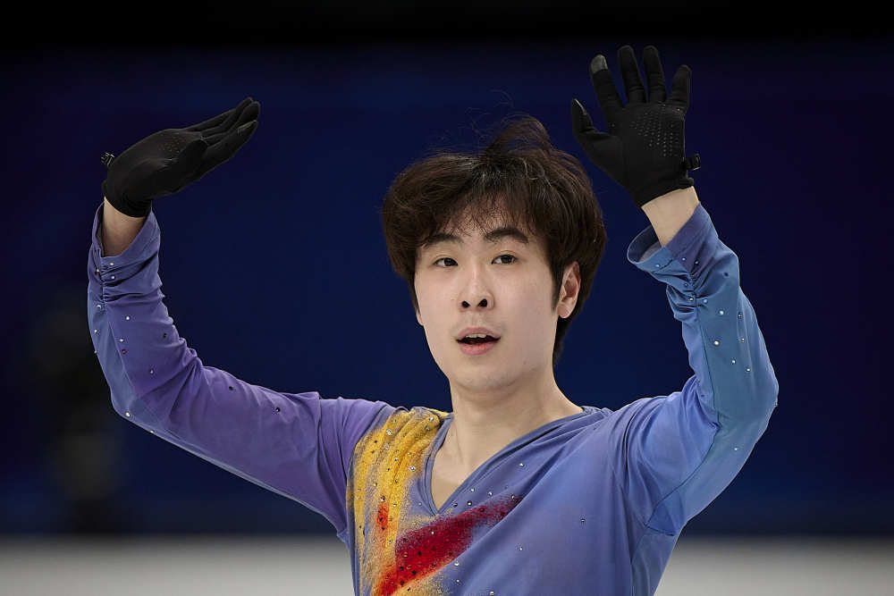 3月25日,中國(guó)選手金博洋在2023年世界花樣滑冰錦標(biāo)賽男子單人滑自由滑比賽中。新華社發(fā)(帕布羅·莫拉諾攝)