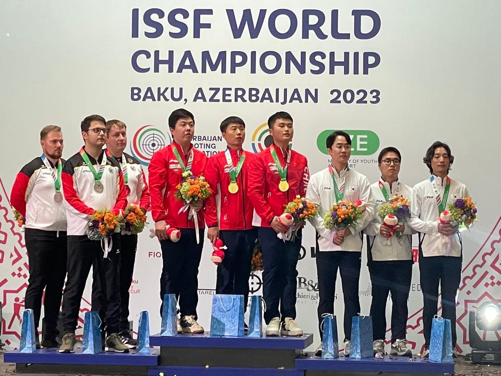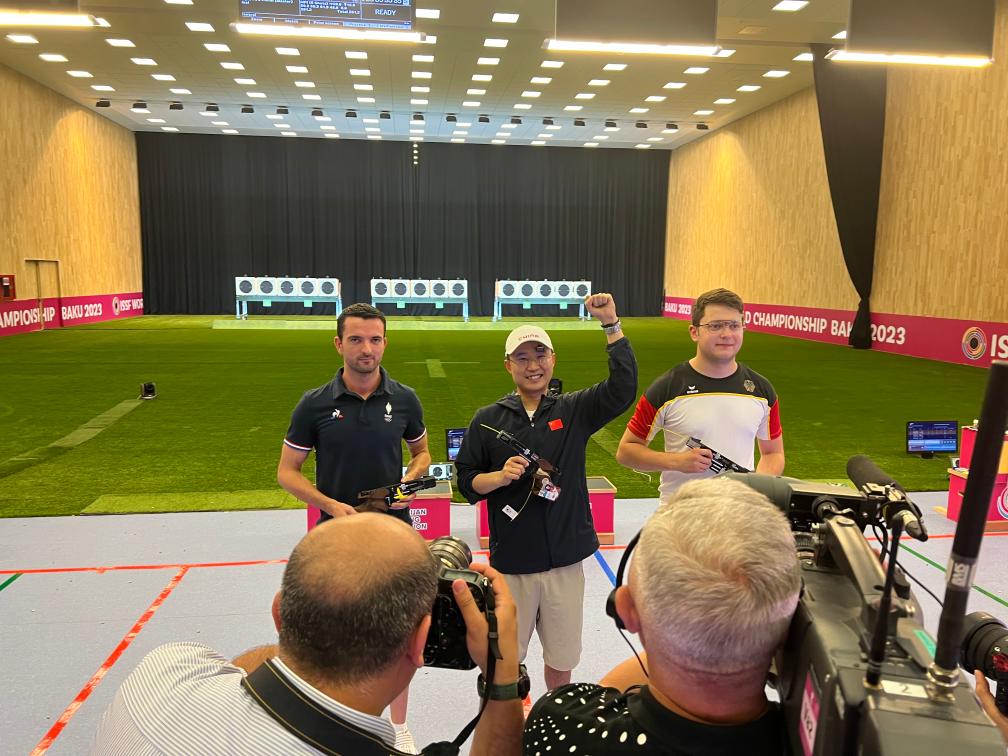該項(xiàng)目比賽中,中國隊老將新人都有出色發(fā)揮。首次參加國際比賽的王鑫杰資格賽打出588環(huán)排名第一,與位居次席的李越宏攜手晉級決賽。他們兩人與劉楊攀組成的中國隊團(tuán)體成績1756環(huán),追平了世界紀(jì)錄,足足領(lǐng)先亞軍德國隊16環(huán)。