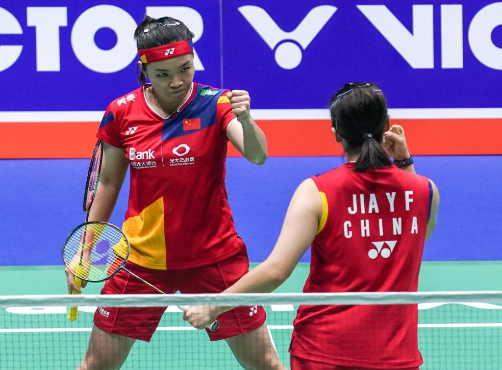 9月10日,中國(guó)組合陳清晨/賈一凡(右)在比賽中。新華社記者 楊磊 攝