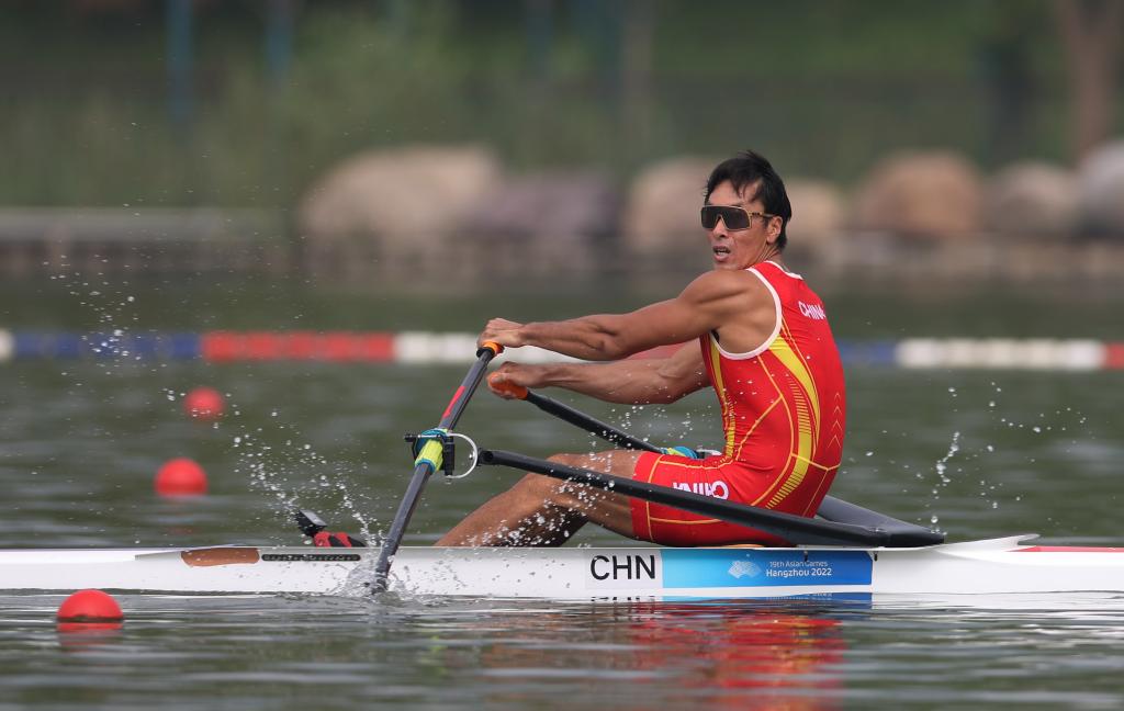 在男子單人雙槳決賽中,36歲的老將張亮蟬聯(lián)冠軍。張亮在出發(fā)后一“艇”當先,1500米過后已領先第二名4秒96,雖然他在最后500米時速度有所下降,但依舊憑借著前半程巨大的領先優(yōu)勢,以6分57秒06強勢奪金。上屆亞運會該項目銅牌得主、日本選手荒川龍?zhí)@得亞軍,中國香港隊運動員趙顯臻摘得銅牌。