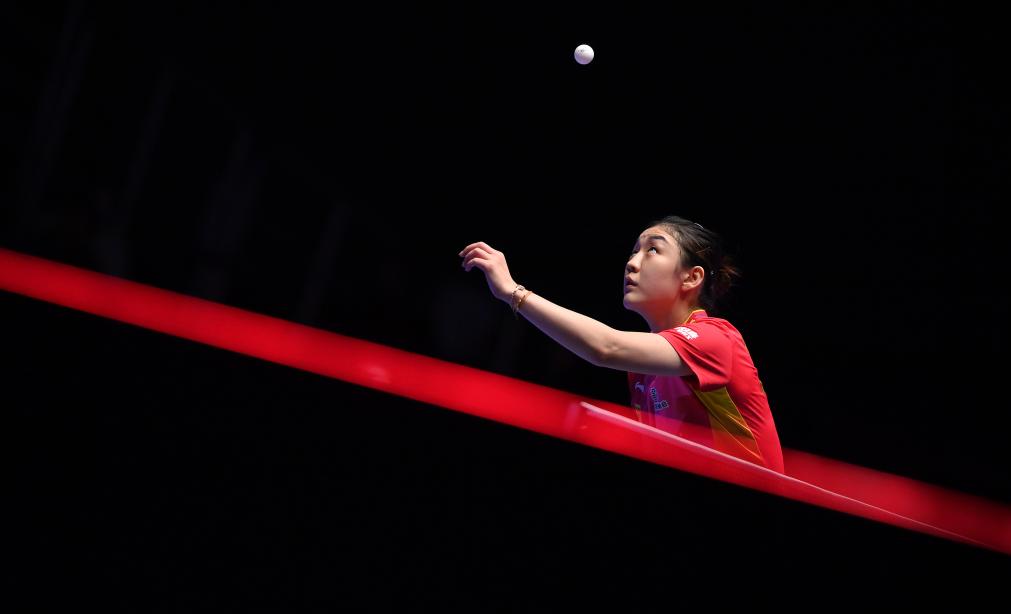 2月22日,陳夢在第二盤比賽中發(fā)球。新華社記者 陶希夷 攝