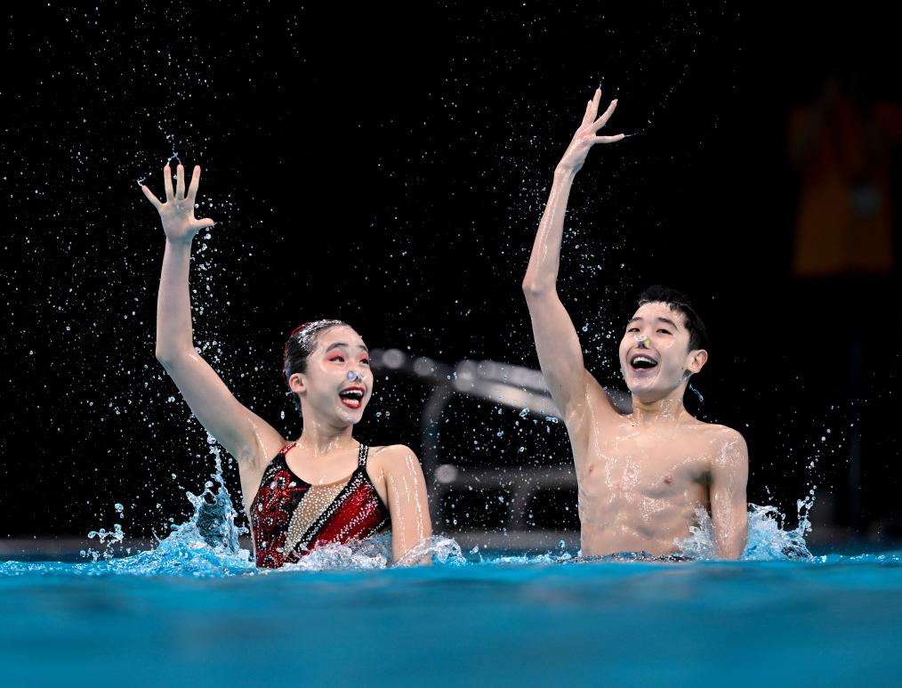 意大利隊、哈薩克斯坦隊和西班牙隊分獲混合自由自選項目前三名。中國隊顧嘉虞/郭牧兮位列第四?!敖裉彀l(fā)揮出了訓(xùn)練水平,我覺得自己需要增強(qiáng)力量,跟其他男選手還有差距,要繼續(xù)努力。”郭牧兮說。