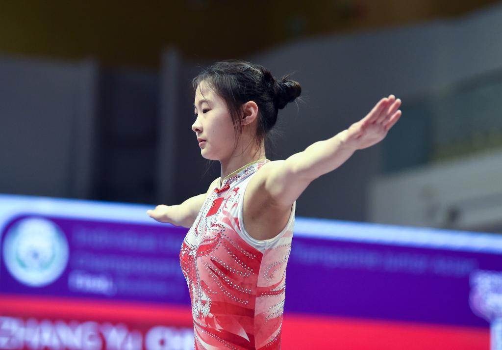 5月12日,中國運動員張瑜在比賽中。新華社記者 盧炳輝 攝