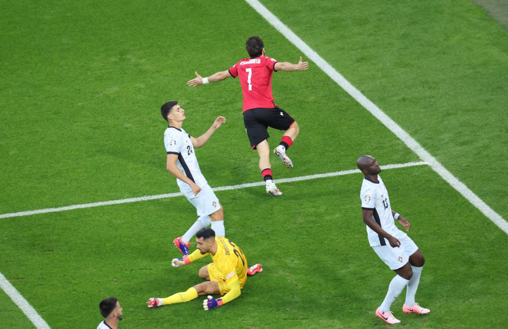第57分鐘,席爾瓦再次出現(xiàn)致命失誤,在禁區(qū)內(nèi)踢人犯規(guī),主裁判經(jīng)視頻助理裁判(VAR)確認判罰點球,米考塔澤將球罰進,格魯吉亞隊2:0鎖定勝局,隊史首次參加歐錦賽正賽就成功小組出線。