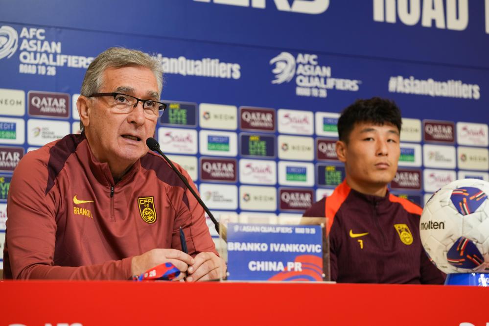 9月4日,中國(guó)隊(duì)主教練伊萬(wàn)科維奇(左)在發(fā)布會(huì)上。新華社記者 張笑宇 攝