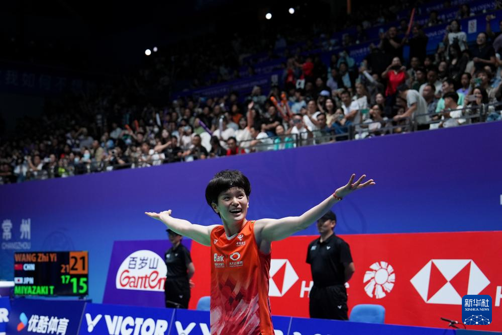 9月22日,王祉怡賽后慶祝勝利。新華社記者 李博 攝