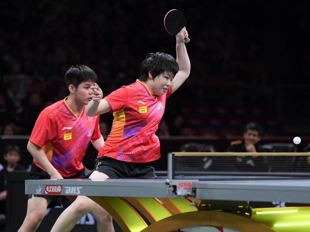 中國(guó)隊(duì)在第一階段比賽中三戰(zhàn)全勝,當(dāng)日在第二階段首場(chǎng)比賽中迎來歐洲老牌勁旅德國(guó)隊(duì)的挑戰(zhàn)。本次賽事德國(guó)隊(duì)弗朗西斯卡、邱黨、杜達(dá)等名將缺陣,因此整體實(shí)力有所下降。首場(chǎng)混雙比賽,中國(guó)隊(duì)沿用了第一階段發(fā)揮穩(wěn)定的林詩(shī)棟/蒯曼組合,他們第一局輕松獲勝。第二局,對(duì)手加強(qiáng)了在旋轉(zhuǎn)和落點(diǎn)上的變化,扳回一城。關(guān)鍵的第三局,“動(dòng)漫”組合頂住壓力,幫助中國(guó)隊(duì)2:1取得領(lǐng)先。