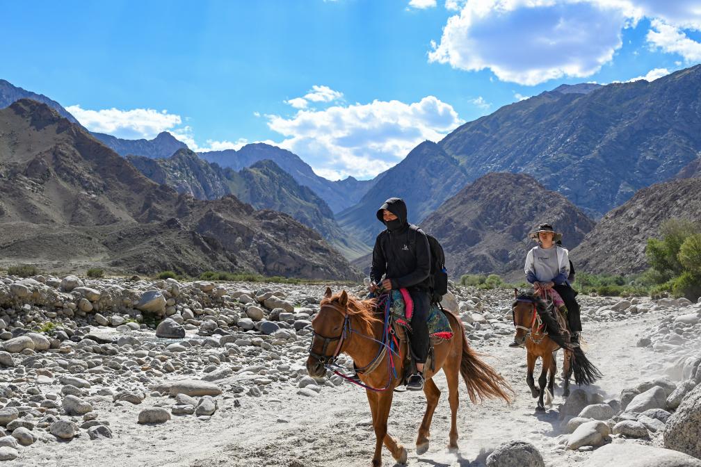 6月9日,游客騎馬進(jìn)入烏孫古道體驗(yàn)。當(dāng)日,在新疆阿克蘇地區(qū)拜城縣,2024年新疆“跟著賽事去旅行”烏孫古道國際徒步露營大會啟動。新華社記者 陳朔 攝