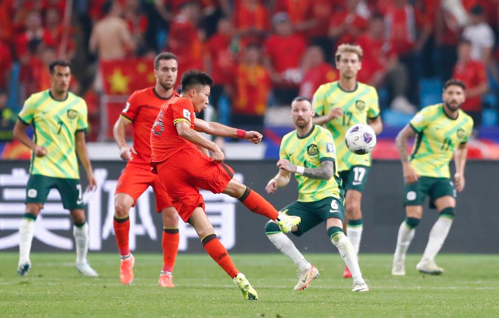 本場(chǎng)比賽,杭州奧體中心體育場(chǎng)涌入了超7萬(wàn)名球迷,不過現(xiàn)場(chǎng)巨大的聲浪并沒能給國(guó)足帶來(lái)好運(yùn)。第16分鐘,澳大利亞隊(duì)杰克遜·歐文得球后殺入禁區(qū),黃政宇在防守時(shí)不慎滑倒,前者起腳兜射破門,中國(guó)隊(duì)0:1落后。