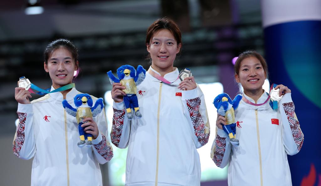 跆拳道也在當(dāng)日結(jié)束全部比賽,中國隊(duì)在該項(xiàng)目上共獲4金2銀3銅。在跆拳道女子團(tuán)體競(jìng)技比賽中,由郭清、穆文喆、邢佳妮組成的中國隊(duì)延續(xù)強(qiáng)勢(shì)表現(xiàn),從16強(qiáng)賽一路以三場(chǎng)2:0橫掃晉級(jí),并在當(dāng)日決賽中以同樣比分戰(zhàn)勝韓國隊(duì),奪得冠軍。