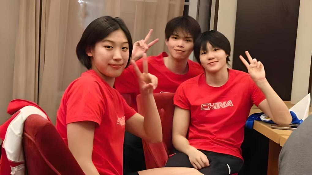 楊佩琪(右)、嚴(yán)窕珊(左)和徐海博(中)。中國游泳隊供圖