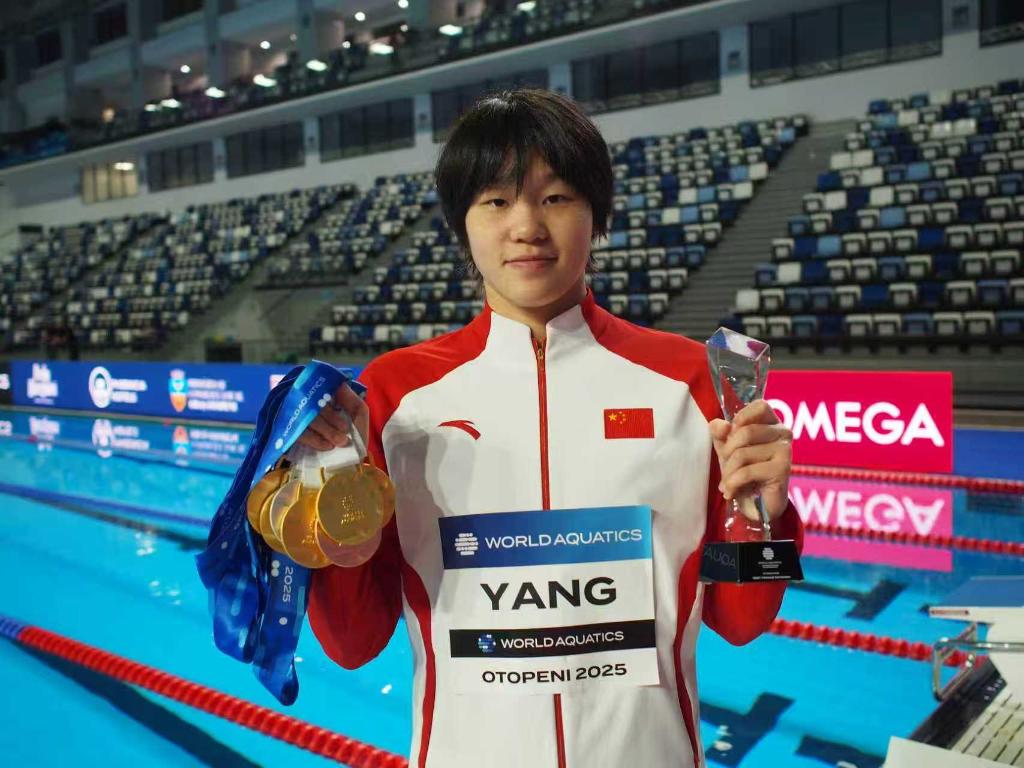 新華社布加勒斯特8月25日電(記者周欣、張改萍)在羅馬尼亞奧托佩尼舉行的世界青年游泳錦標(biāo)賽24日晚落幕,中國游泳隊的金牌和獎牌數(shù)均創(chuàng)造世青賽歷史新高。18歲的楊佩琪成為最亮的“那顆星”,獨攬5金1銀1銅,個人刷新兩項賽會紀(jì)錄,榮膺賽事最佳女運動員(MVP)。