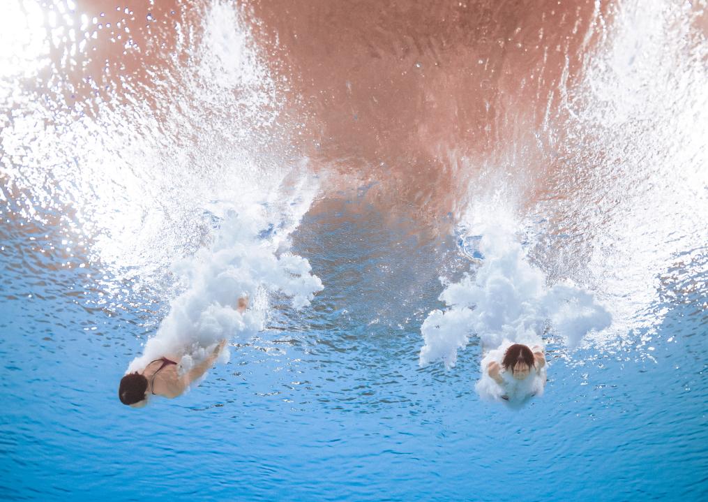 陳芋汐/掌敏潔展現(xiàn)出了默契和實力,以5輪第一、總成績350.22的分數(shù)將金牌穩(wěn)穩(wěn)收入囊中。