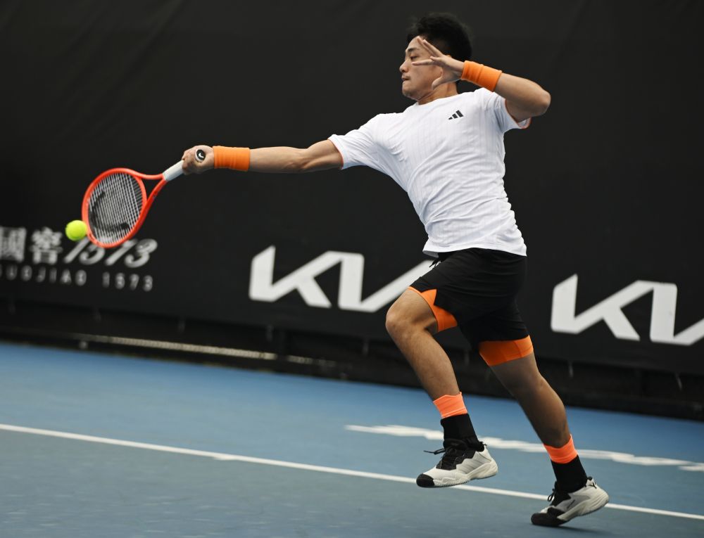 1月13日,吳易昺在比賽中回球。當日,在澳大利亞墨爾本進行的2026年澳大利亞網(wǎng)球公開賽男子單打資格賽首輪比賽中,中國選手吳易昺2:0戰(zhàn)勝美國選手克魯格,晉級資格賽第二輪。新華社發(fā)(王申攝)