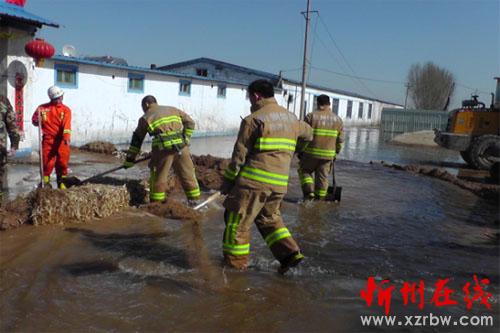 消防官兵到達(dá)現(xiàn)場,經(jīng)現(xiàn)場詢問和偵察,了解到:由于該村外農(nóng)田冬季澆水太多造成冰凍,近期氣溫回升使田地里凍結(jié)積水溶解,位于田地東北部一養(yǎng)牛場地勢低洼,冰解融水全部灌入養(yǎng)牛場,情況十分危急,中隊指揮員迅速與養(yǎng)牛場負(fù)責(zé)人聯(lián)系村民鏟車進行填堵,同時命令中隊?wèi)?zhàn)斗員利用鐵鍬進行堵截,在經(jīng)過大約20分鐘的迅速搶救,最終排除險情,幫村民挽回了巨大的經(jīng)濟損失。最后在與養(yǎng)牛場負(fù)責(zé)人交接好手續(xù)確定無險情后,中隊全體指戰(zhàn)員收整器材返回中隊,特勤中隊官兵快速處置,不怕苦、不怕累的精神贏得了在場群眾的一致好評。(張志遠(yuǎn) 白耀周)