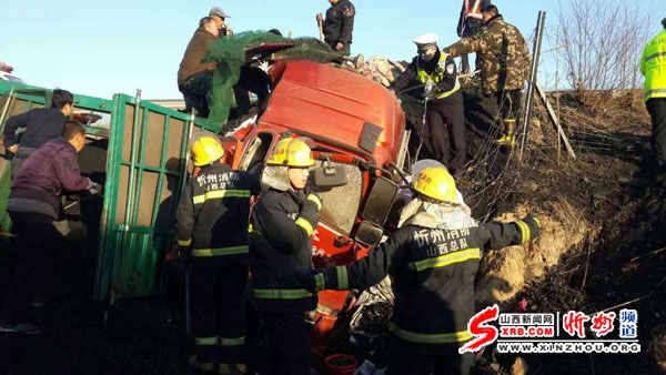 7:30分左右,定襄縣消防接警后緊急出動(dòng)趕到事故現(xiàn)場,與交警及現(xiàn)場群眾一起展開救援,隨后趕到的120醫(yī)護(hù)人員已給被困受傷司機(jī)打吊瓶進(jìn)行搶救。