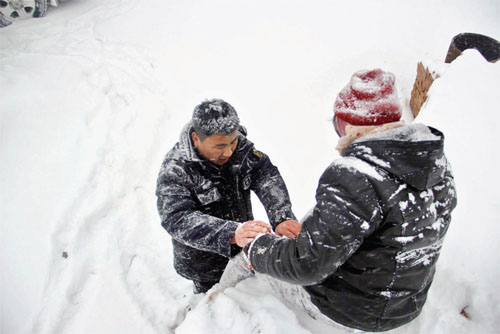青海居士山林遇險五臺山民警冒雪救援