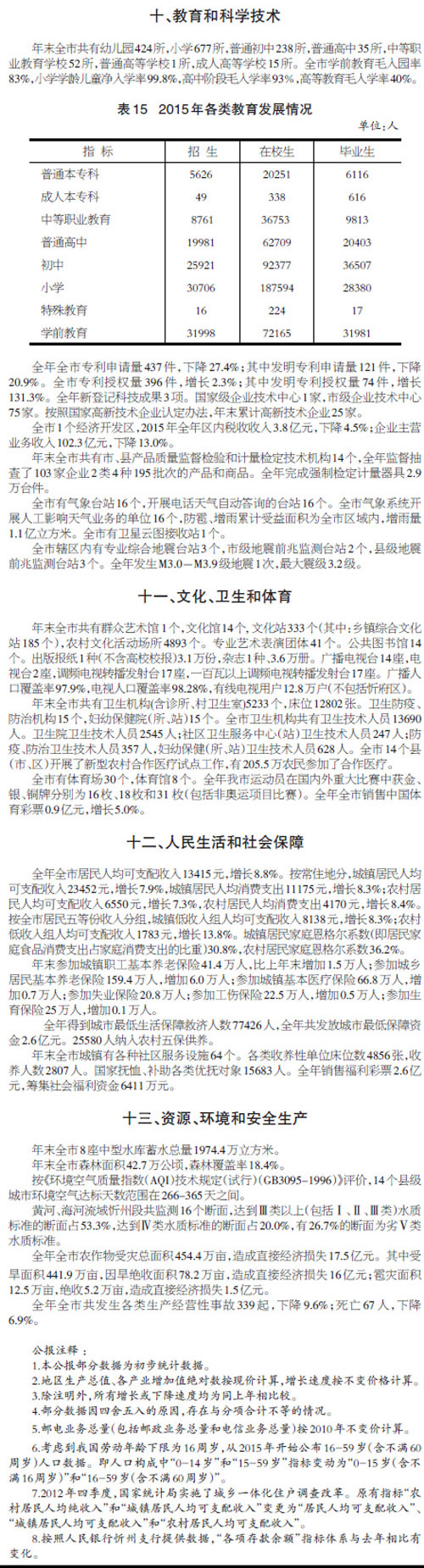 忻州市2015年國(guó)民經(jīng)濟(jì)和社會(huì)發(fā)展統(tǒng)計(jì)公報(bào)