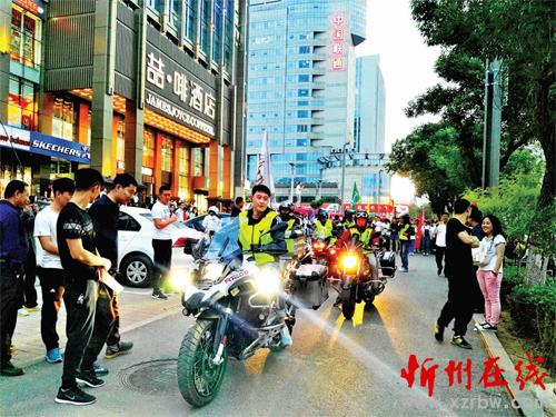 本次“熒光跑”活動由開來欣悅購物廣場主辦,忻州藍(lán)天救援隊、秀容騎士摩托騎行隊和愛心公益大聯(lián)盟等眾多志愿者隊伍為該活動全程提供安全保障,大家用“熒光跑”這種獨特的方式表達(dá)著對家鄉(xiāng)忻州的熱愛。圖為摩托騎行隊為“熒光跑”開道(魯明強(qiáng) 米成俊)