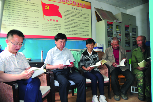 劉桂珍與鄉(xiāng)領(lǐng)導(dǎo)一塊組織黨員開(kāi)展“兩學(xué)一做”學(xué)習(xí)教育工作