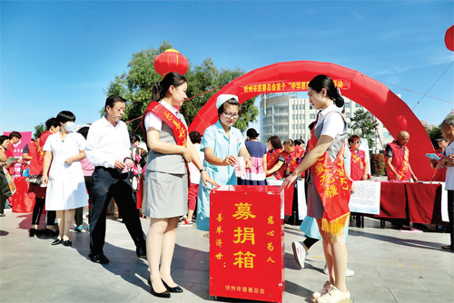9月1日,《中華人民共和國慈善法》(以下簡稱《慈善法》)正式實施,9月5日是我國首個“中華慈善日”。這天上午,忻州市慈善總會在忻州城區(qū)日月廣場舉行規(guī)模盛大的集會,向廣大市民宣傳普及國家《慈善法》的相關(guān)知識。中國公益在線忻州愛心團(tuán)的志愿者,同濟(jì)醫(yī)院、新世紀(jì)女子醫(yī)院、中西醫(yī)結(jié)合醫(yī)院、忻州肝泰肛腸醫(yī)院的醫(yī)務(wù)人員參加了宣傳活動,并慷慨解囊,與市慈善總會工作人員一道參與了現(xiàn)場的慈善捐款活動。