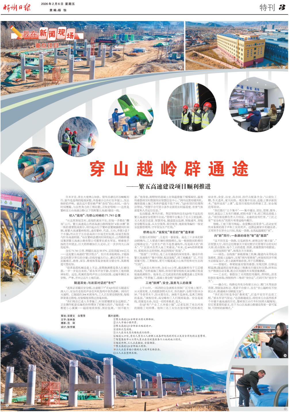 年末歲首,晉北大地寒山如鐵。驅(qū)車沿滹沱河谷蜿蜒而行,窗外是連綿的陡崖深壑,風(fēng)卷著沙塵撲打在車窗上,發(fā)出細(xì)碎的聲響。就在這片看似被嚴(yán)寒“凍結(jié)”的山水間,一曲與時(shí)間賽跑、與自然角力的工程壯歌,正恢宏唱響——這里是繁峙至五臺(tái)高速公路(以下簡(jiǎn)稱繁五高速)建設(shè)一線。