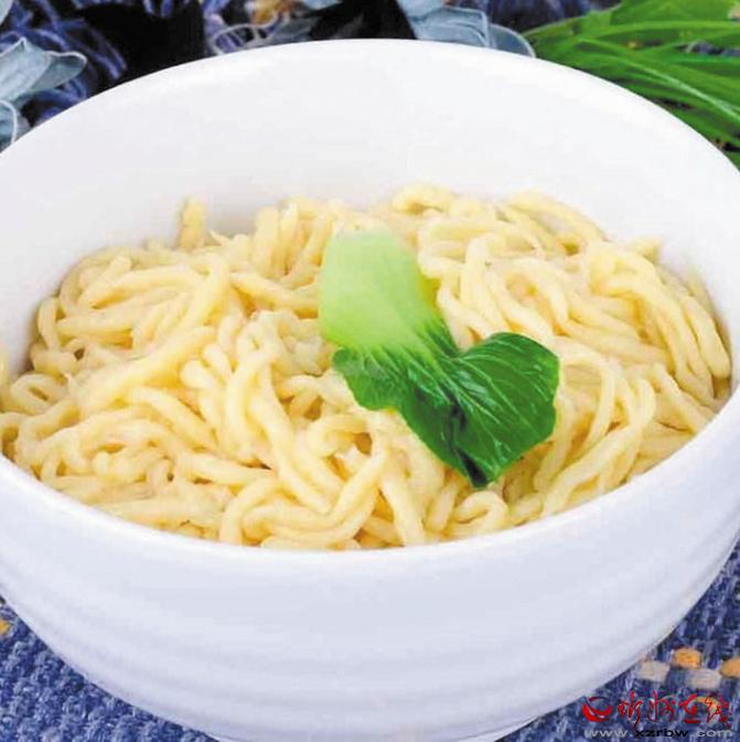 豆面稍加白面制成的豆面河撈是五寨當?shù)氐奶厣s糧主食,經特制的河撈床下到鍋里,待面壓到一定長度,截斷面條,煮熟后配上各種澆頭,吃著筋滑利口。(張志遠)