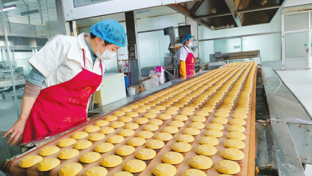6月4日,走進鑫炳記太谷餅產(chǎn)業(yè)園區(qū),一股濃郁的餅香撲面而來,絲絲甜味沁人心脾。
