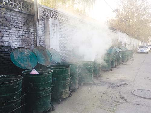 11月19日上午,記者在城區(qū)長(zhǎng)征西街南巷看到,鐵皮垃圾桶內(nèi)濃煙滾滾,能明顯聞到垃圾焚燒散發(fā)出的刺鼻氣味,嚴(yán)重影響周?chē)用竦纳?。?jù)了解,垃圾平時(shí)都會(huì)在垃圾回收站統(tǒng)一進(jìn)行處理,今早突然發(fā)現(xiàn)該現(xiàn)象,希望相關(guān)部門(mén)加大監(jiān)管力度,避免類(lèi)似事情發(fā)生,污染城市空氣環(huán)境。劉鑫林 攝
