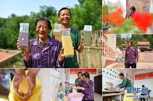 張成華,女,1949年出生,山西省長治市武鄉(xiāng)縣嶺頭村人。近年來,嶺頭村在縣里有關(guān)部門的扶持下,對村民開展電商培訓。村民們嘗試著在手機上“開店”,把小米、核桃、綠豆等農(nóng)產(chǎn)品在網(wǎng)絡(luò)上售賣。張成華的兒子魏寶玉開了網(wǎng)店后,自家的農(nóng)產(chǎn)品在網(wǎng)上銷售良好,家庭收入明顯增加。 左上:張成華(前)和兒子魏寶玉展示自家種的農(nóng)產(chǎn)品;右上:張成華在家中院子里收拾;右中:張成華走在村里的路上;右下:張成華的兒子魏寶玉將準備發(fā)貨的農(nóng)產(chǎn)品進行稱重;下中:張成華(前)將小米裝袋;下左:張成華在查看小米質(zhì)量(拼版照片,6月12日攝)。 地處晉東南的山西省長治市,位于由太行山、太岳山環(huán)繞而成的上黨盆地中。在群山中、崖壁上,許多村莊自然條件惡劣,基礎(chǔ)設(shè)施落后,脫貧致富是大山深處人們的迫切心愿。 近年來,一場場脫貧攻堅戰(zhàn),在一個個深山村打響。政府全力探索脫貧路徑的同時,山區(qū)百姓因地制宜,靠自己的雙手和智慧走上致富路,交出了一份扎實的脫貧答卷。 記者在太行山、太岳山一路尋訪,記錄下多位70歲老人的生活。這些共和國的同齡人,親歷了山鄉(xiāng)的巨變,見證著長治山區(qū)脫貧攻堅偉大工程的一步步推進。 新華社記者 詹彥 攝
