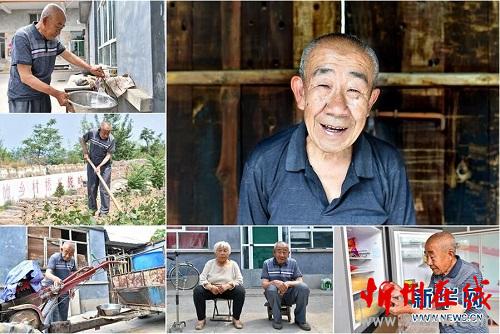 郭中其,男,1949年出生,山西省長治市潞城區(qū)常村人,全家6口人靠種地為生,因家人重病而造成生活困難。被納入建檔立卡貧困戶后,郭中其家人治病的花銷顯著減少,子女參加了免費技能培訓(xùn)并找到了工作,家里的生活條件得到了改善,2017年全家脫了貧。 右上:郭中其肖像;左上:郭中其在院子里接水;左中:郭中其在田地里鋤草;左下:郭中其在擦拭拖拉機(jī);下中:郭中其和老伴坐在院子里;下右:郭中其從冰箱里拿出西紅柿(拼版照片,6月12日攝)。 地處晉東南的山西省長治市,位于由太行山、太岳山環(huán)繞而成的上黨盆地中。在群山中、崖壁上,許多村莊自然條件惡劣,基礎(chǔ)設(shè)施落后,脫貧致富是大山深處人們的迫切心愿。 近年來,一場場脫貧攻堅戰(zhàn),在一個個深山村打響。政府全力探索脫貧路徑的同時,山區(qū)百姓因地制宜,靠自己的雙手和智慧走上致富路,交出了一份扎實的脫貧答卷。 記者在太行山、太岳山一路尋訪,記錄下多位70歲老人的生活。這些共和國的同齡人,親歷了山鄉(xiāng)的巨變,見證著長治山區(qū)脫貧攻堅偉大工程的一步步推進(jìn)。 新華社記者 曹陽 攝