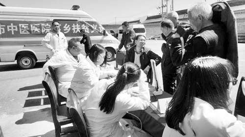 胡家溝村有貧困戶80戶。市委老干部局從2015年開始進(jìn)行幫扶,緊緊圍繞“一戶一名技術(shù)工,做好精準(zhǔn)扶貧”的工作思路,在技能培訓(xùn)、項(xiàng)目實(shí)施、基礎(chǔ)建設(shè)、教育援助、文藝活動(dòng)等方面開展了大量卓有成效的工作,在2016年底取得了整村脫貧的好成績。這次健康扶貧行動(dòng),是市委老干部局認(rèn)真貫徹全市脫貧攻堅(jiān)大會(huì)精神,鞏固成績、持續(xù)發(fā)力,不斷推進(jìn)幫扶成果的具體體現(xiàn)。針對(duì)村民對(duì)疾病預(yù)防和治療方面的需求,市委老干部局聯(lián)系市中醫(yī)院組織了義診活動(dòng)。市中醫(yī)院內(nèi)科、外科、心內(nèi)科等多個(gè)科室的9名醫(yī)務(wù)骨干和老專家,為貧困村民把脈問診、開方治療,使106名村民得到診療。