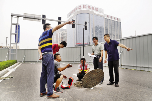 圖為技術人員現(xiàn)場檢測分析塌陷原因