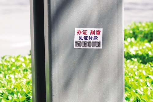 情況二:經(jīng)過(guò)創(chuàng)衛(wèi)整治,在清理了小廣告之后被粉刷一新的一些宣傳欄金屬框架上,赫然再現(xiàn)“辦證、刻章、見(jiàn)證付款”等垃圾小廣告,大煞風(fēng)景,影響市容,令人氣憤。