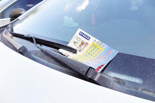 情況三:在日常生活里,我們經(jīng)常會(huì)看到一些散發(fā)銷售商品房廣告的人將廣告紙放到汽車(chē)的雨刮器下面,如果駕駛員不及時(shí)清理,會(huì)遮擋前方玻璃的視線;一旦廣告紙順勢(shì)滑入汽車(chē)前蓋下的驅(qū)動(dòng)器械里面,還可能造成不可預(yù)測(cè)的安全隱患。