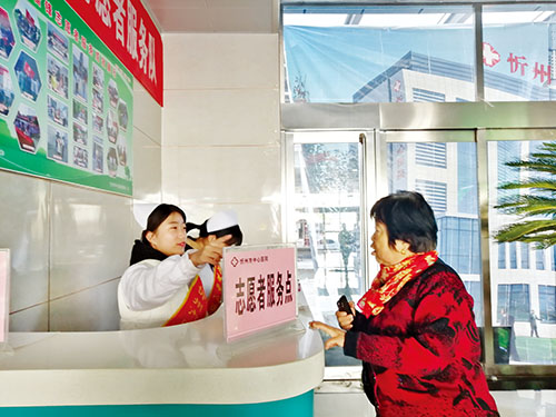 值得一提的是,市中心醫(yī)院在門診大廳的導醫(yī)臺設置了志愿者服務點,并成立了志愿者服務隊,及時為需要幫助的患者提供愛心服務。據(jù)了解,志愿者服務隊自成立以來,積極為就診患者提供導診、咨詢、護送、取藥、健康教育等服務,為住院患者提供一般生活護理、溝通交流等服務,還利用休息時間到社區(qū)、學校、農(nóng)村、社會福利機構等地,為群眾提供診療、健康教育、康復輔導等服務,受到了患者、群眾的一致好評。