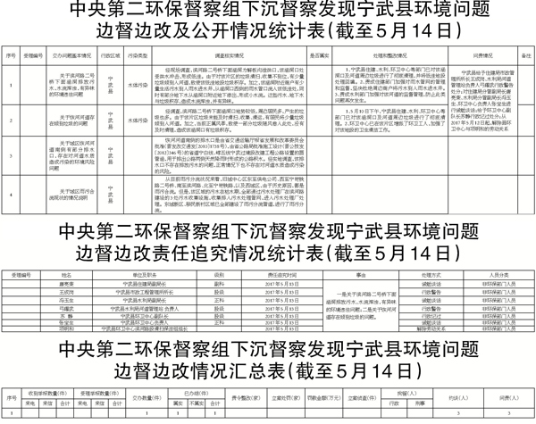 2017年5月10日上午,中央第二環(huán)保督察組副組長、環(huán)保部副部長黃潤秋同志在我市現(xiàn)場督察調(diào)研時,指出寧武縣存在環(huán)境違法問題2個、環(huán)境風險問題1個、要求報告的情況1個。