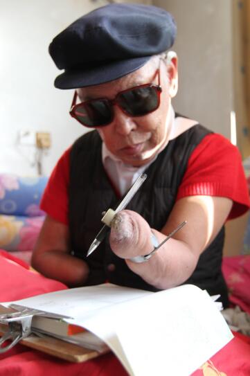 用嘴含筆寫,殘臂夾筆(抱臂)寫,鐵圈套筆寫。整整7年。苦熬苦寫了7年,反復(fù)修改了7遍。2000多個(gè)日日夜夜,父親翻爛了四本字典,很多時(shí)候,胳膊翻書不方便,他就用嘴唇翻,用舌頭翻。用掉半噸稿紙,終于在1996年7月,出版了33萬字的自傳體小說《極限人生》。