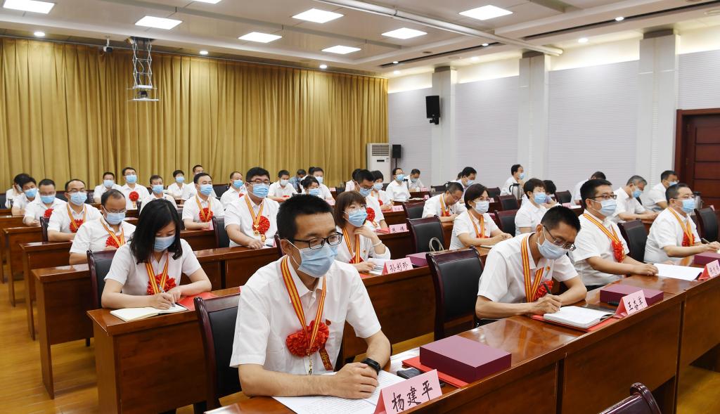 朱曉東在主持大會時強調,全市各級黨組織和廣大黨員要深學細悟篤行習近平新時代中國特色社會主義思想,特別是習近平總書記視察山西重要講話重要指示,進一步提高政治判斷力、政治領悟力、政治執(zhí)行力,不斷增強“四個意識”、堅定“四個自信”、做到“兩個維護”。要以受表彰的優(yōu)秀個人和先進集體為標桿,學習先進、爭當先進、趕超先進,深入開展“我為群眾辦實事”實踐活動,充分發(fā)揮黨組織的戰(zhàn)斗堡壘作用和黨員的先鋒模范作用,以實際行動詮釋新時代共產黨人信念堅定、對黨忠誠、勇于擔當、無私奉獻的崇高品格。要切實把思想和行動統(tǒng)一到黨中央、省委、市委決策部署上來,緊緊圍繞市委“336”戰(zhàn)略布局,積極投身我市奮力蹚出全面轉型忻州之路的生動實踐,奮進新時代,走好新征程,以優(yōu)異成績慶祝建黨一百周年。