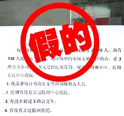 近日,有關青島新增兩名確診病例的信息在網(wǎng)上流傳,稱“膠州密切接觸者21375人,尚有918人接受醫(yī)學觀察”、“患者女婿是3路公交車司機!已經(jīng)確診了”等。