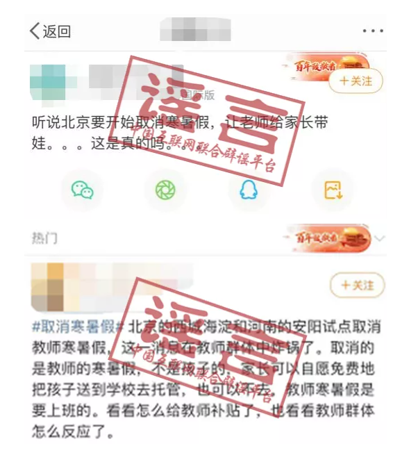 中國(guó)互聯(lián)網(wǎng)聯(lián)合辟謠平臺(tái)第一時(shí)間向教育部相關(guān)部門(mén)求證,確認(rèn)“北京、河南試點(diǎn)取消教師寒暑假”為不實(shí)消息。