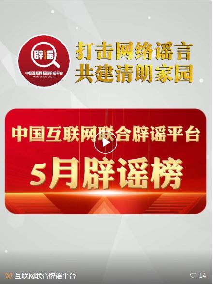 打擊網絡謠言 共建清朗家園 中國互聯(lián)網聯(lián)合辟謠平臺5月辟謠榜