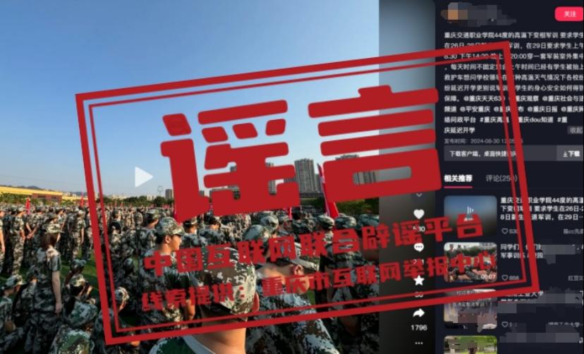 真相:近日,某網(wǎng)民發(fā)布視頻并配文稱“重慶交通職業(yè)學(xué)院要求新生在44度的天氣下進行軍訓(xùn),已經(jīng)有學(xué)生暈倒被抬上救護車”,引發(fā)關(guān)注。經(jīng)向重慶交通職業(yè)學(xué)院核實,近期學(xué)院未安排開展任何軍訓(xùn)活動,更不存在有學(xué)生因為高溫天氣軍訓(xùn)暈倒的情況。目前,屬地公安部門已對造謠者展開進一步調(diào)查。(來源:“重慶辟謠”微信公眾號)