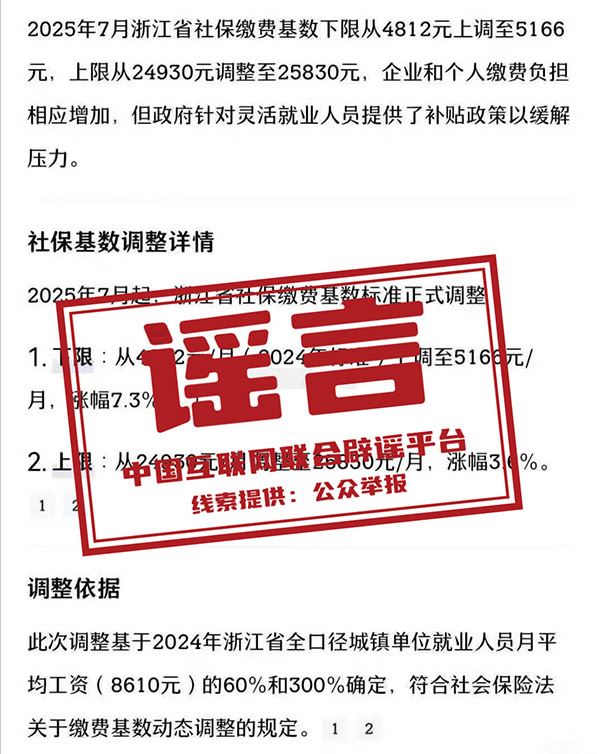 謠言:2025年杭州社保基數(shù)下限上調(diào)至5166元?